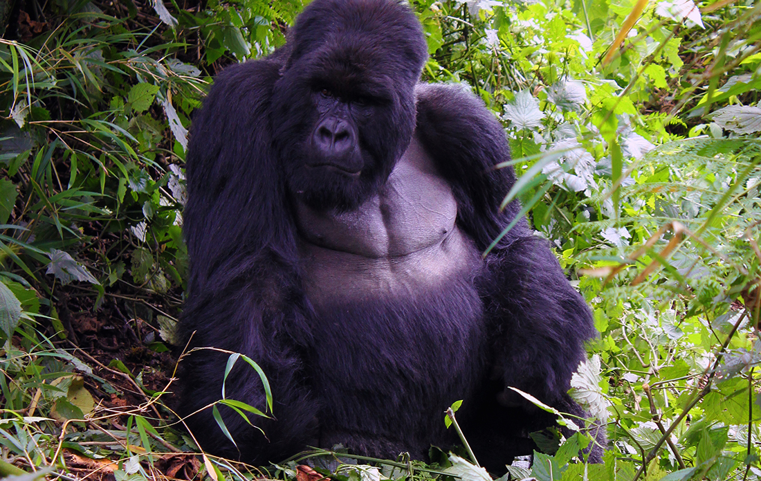 Vi är på gorillasafari i Rwandas Volcanoes national park, nära gränsen till Kongo-Kinshasa. Parken är den största av de nationalparker i området som bebos av bergsgorillor – de andra är Virungaparken i Kongo och Mgahinga- respektive Bwindiparkerna i Uganda.